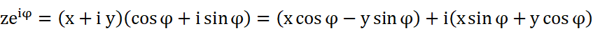 偏角の選び方として、計算量が減るようになるべく実数にした方がよいので、回転行列の1行1列目が実数になるように選ぶ(α=0 , β=φ1-φ2)、または回転結果が実数になるように選ぶ(α=-φ1 , β= -φ2)の2とおりが考えられる。