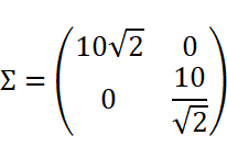 ・伸縮Σは球から楕円体への変換で、対角要素σは楕円体の各軸の半径。