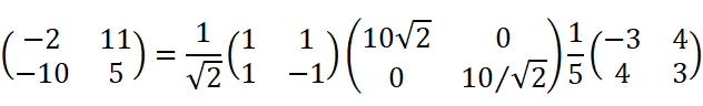 任意の行列Aは対角行列Σとユニタリ行列U,Vに分解できる。 Σの対角要素(特異値)は非負で大きい順に並べる。